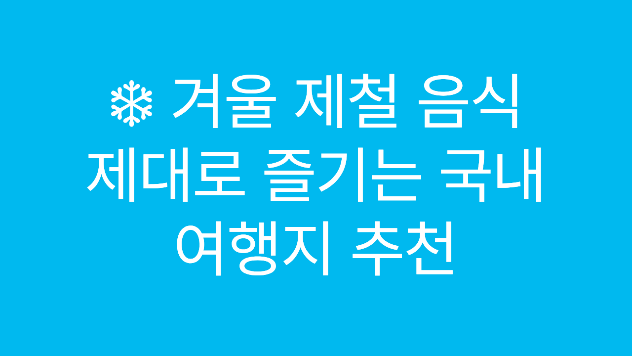 오늘은 겨울 제철 음식 + 지역 명소를 함께 즐길 수 있는 국내 여행지를 소개해 드릴게요.